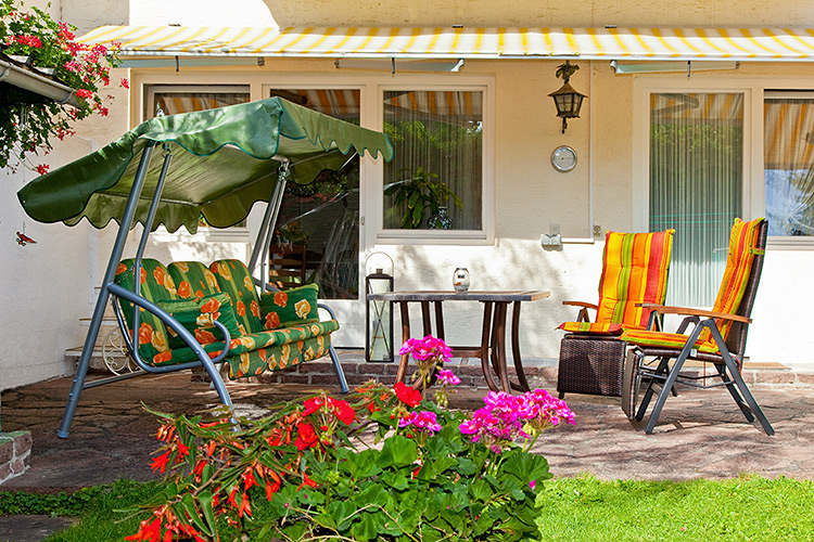 Unseren Gästen steht eine Sonnenterrasse mit Gartenmöbeln zur Verfügung.