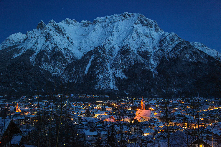 Mittenwald and mountain Karwendel by night